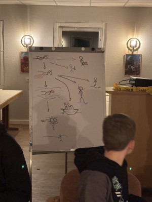 Unsere erfahrenen Mitglieder nutzten die Gelegenheit, spannende Geschichten aus ihrer DLRG-Zeit zu erzählen und zeigten eindrucksvoll, was unser Verein außer dem Schwimmtraining alles zu bieten hat. Die Kinder hörten neugierig zu und lernten neue Seiten der DLRG kennen – von Einsätzen über soziale Projekte bis hin zu kreativer Jugendarbeit. Gemeinsam entstand sogar eine bunte Übersicht, die all die verschiedenen Tätigkeitsbereiche sichtbar machte.